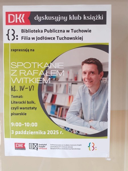 3 października Dyskusyjny Klub Książki z naszej szkoły miał przyjemność uczestniczyć w spotkaniu autorskim z p. Rafałem Witkiem w Bibliotece Publicznej w Tuchiwie Filia w Jodłówce Tuchowskiej.