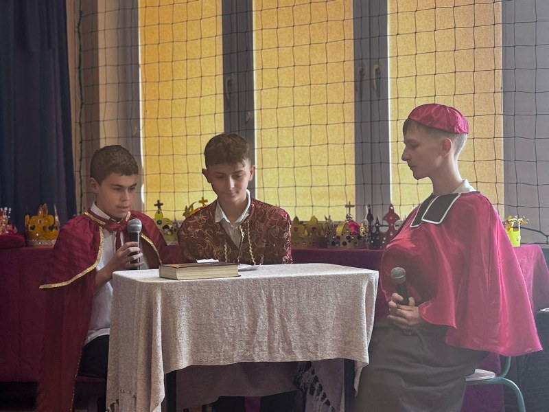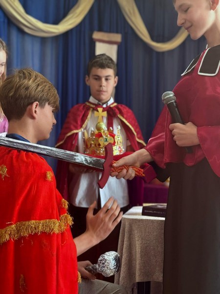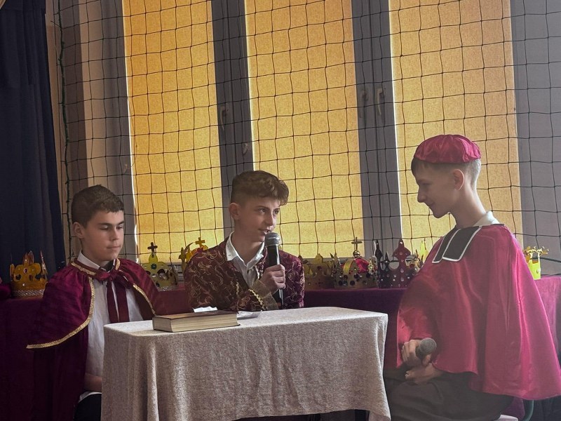Po przedstawieniu nadszedł czas podsumowania Szkolnego Konkursu Historycznego „Królewski symbol – korona Bolesława Chrobrego”. Konkurs skierowany został do wszystkich uczniów naszej szkoły. Złożono 21 pięknie zdobionych koron, oddających królewski przepych i uwzględniających elementy symboliczne i charakterystyczne dla średniowiecza. Wszystkie prace zostały docenione przez jury i nagrodzone przez panią dyrektor, Katarzynę Osikę, która obięła patronat nad konkursem.