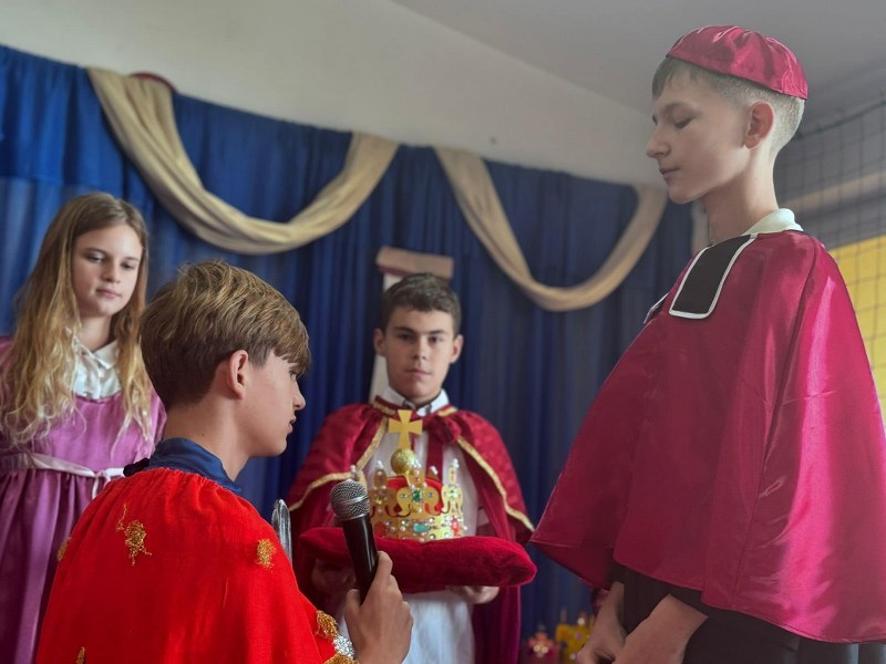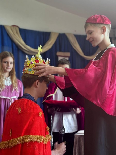 Sejm Rzeczypospolitej Polskiej ustanowił rok 2025 Rokiem milenium koronacji dwóch pierwszych królów Polski – Bolesława Chrobrego i Mieszka II Lamberta. Z tej okazji uczniowie kl. VII przygotowali inscenizację koronacji pierwszego króla Polski – Bolesława Chrobrego. Koronacja czyniła z monarchy pomazańca bożego, była również aktem politycznym, manifestacją woli niepodległości i niezależności młodego państwa polskiego. Nasz kraj zaczęto odtąd określać i opisywać jako królestwo, a polskiego monarchę stawiano na równi z innymi koronowanymi władcami europejskimi. Odtworzyliśmy przybliżony przebieg tej doniosłej uroczystości, ponieważ nie znamy dokładnego przebiegu koronacji Bolesława Chrobrego. Z pewnością tę niecodzienną lekcję historii zapamiętają zarówno przedszkolaki jak i młodzież.