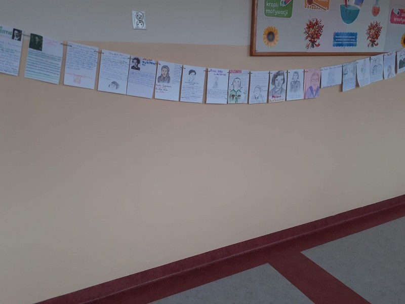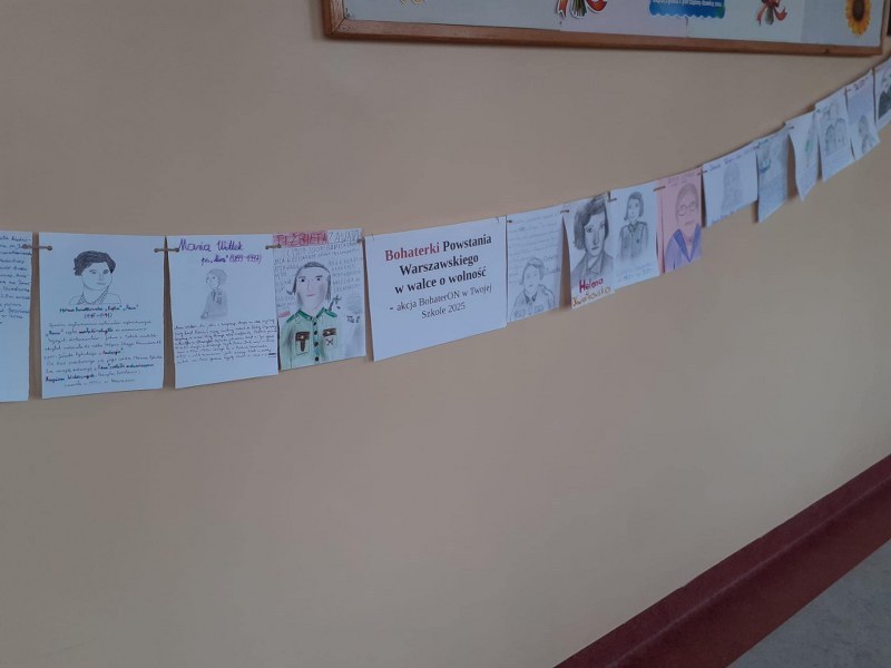 Od września do końca października we wszystkich klasach odbyły się lekcje biblioteczne na temat: Bohaterki Powstania Warszawskiego w walce o wolność. Na zjęciach korzystano z udostępnionych przez organizatora materiałów. Młodsze dzieci przygotowywały strój sanitariuszki i łączniczki, a starsi uczniowie wykonywały girlandy z zaprezentowanymi sylwetkami kobiet, uczestniczek Powstania Warszawskiego.