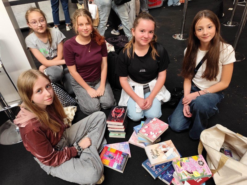 Nasi uczniowie, przesiąknięci magicznym klimatem Targów, z zapałem i entuzjazmem udali się na poszukiwania dobrej literatury. Po dobrych 5 godzinach okazało się, że było w czym wybierać! Powrócili zmęczeni, ale uśmiechnięci i bogato zaopatrzeni w literaturę na długie jesienne wieczory. Rekordzistka zakupiła 24 książki, druga osoba 12, a średnia liczba nabytych woluminów wyniosła 6 sztuk! Naszych młodych czytelników nie odstraszyła nawet długa kolejka po autograf do Neli Małej Reporterki.