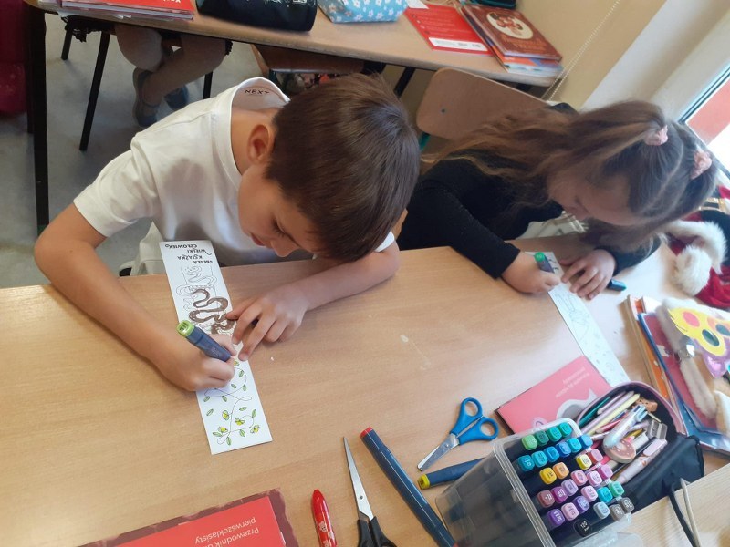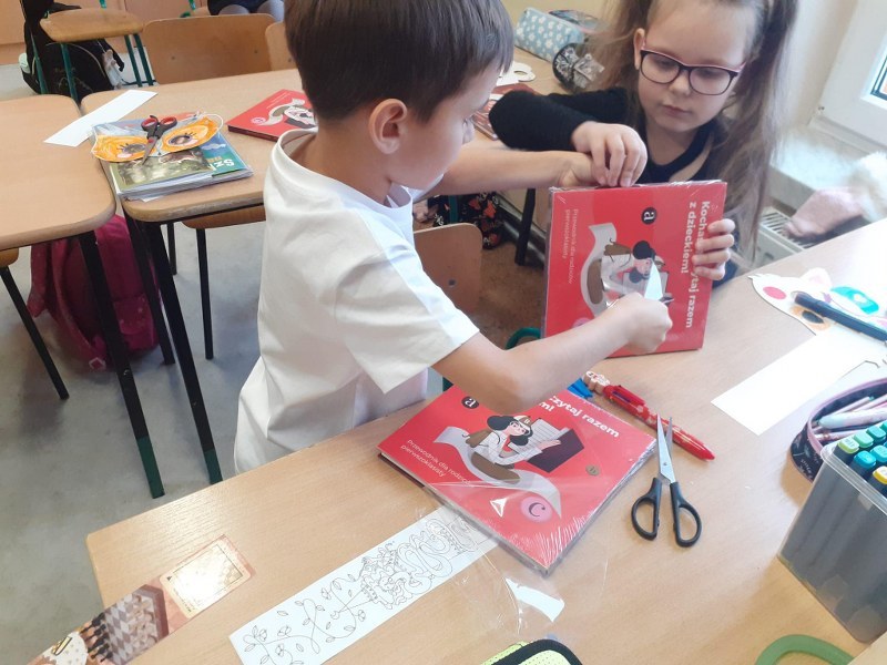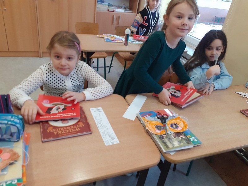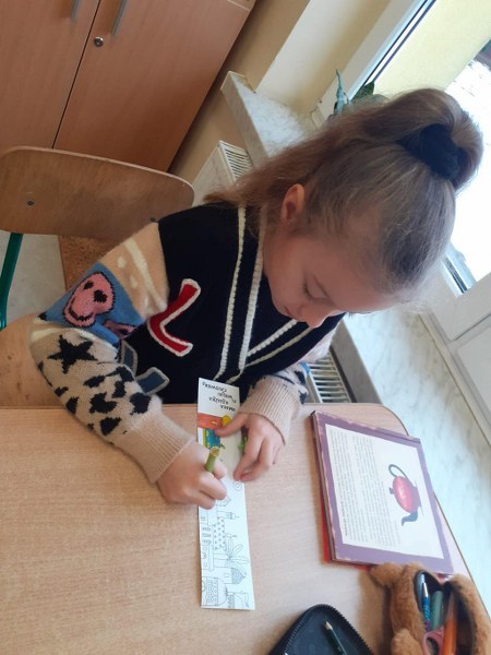 Następnie dzieci opowiadały o swoich doświadczeniach z książkami i własnej, domowej biblioteczce, wskazywały korzyści z czytania literatury wraz z najbliższymi, wymyślały także „prośby książek”, które mogłyby być skierowane do czytelników. Na koniec młodzi czytelnicy układali rymowanki nakłaniające do czytania i kolorowali zakładkę do własnej książeczki.