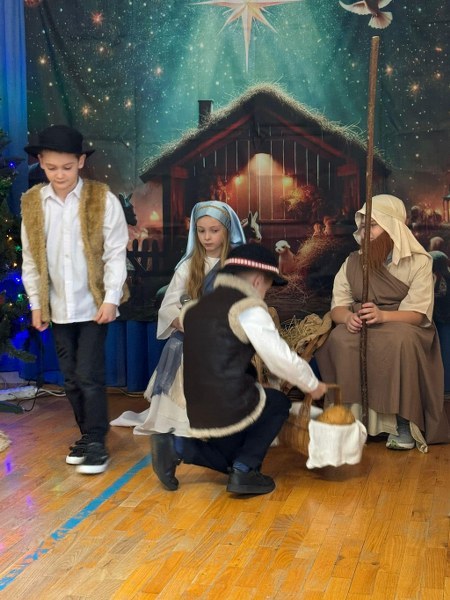 Po zakończonym przedstawieniu dzieci do życzeń dołączyły uściski i upominki, które przygotowały podczas warsztatów z paniami z KGW w Jodłówce Tuchowskiej.
