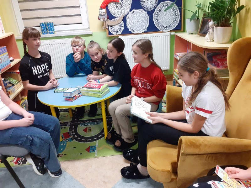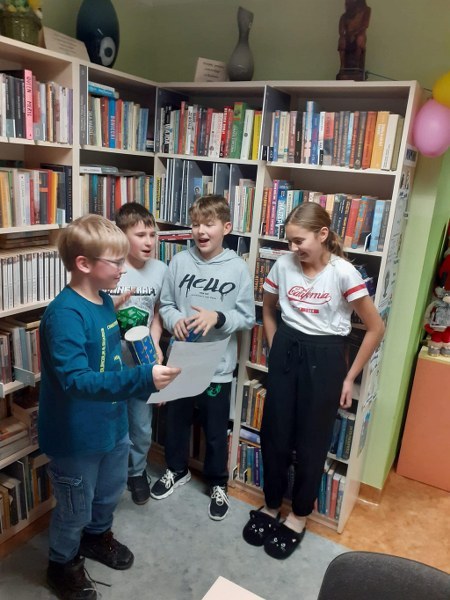 zasłużonego wypoczynku, integracji i dobrej, bezpiecznej zabawy. Zaczęliśmy więc ferie od spotkania w bibliotece. I tym razem nie brakło atrakcji dla dzieci i młodzieży z naszej szkoły: konkursy, prace plastyczne, czytanie poezji ks. Jana Twardowskiego, gry, śpiewy, tańce, kąciki zainteresowań, spotkanie DKK…, czyli dla każdego coś ciekawego! A to wszystko w miłej, serdecznej i przyjaznej atmosferze. Aż szkoda, że ten czas tak szybko upłynął… ⏳