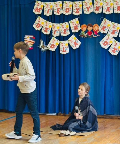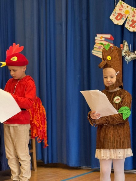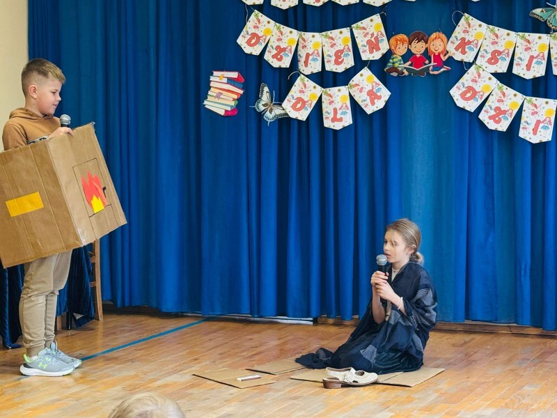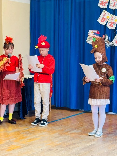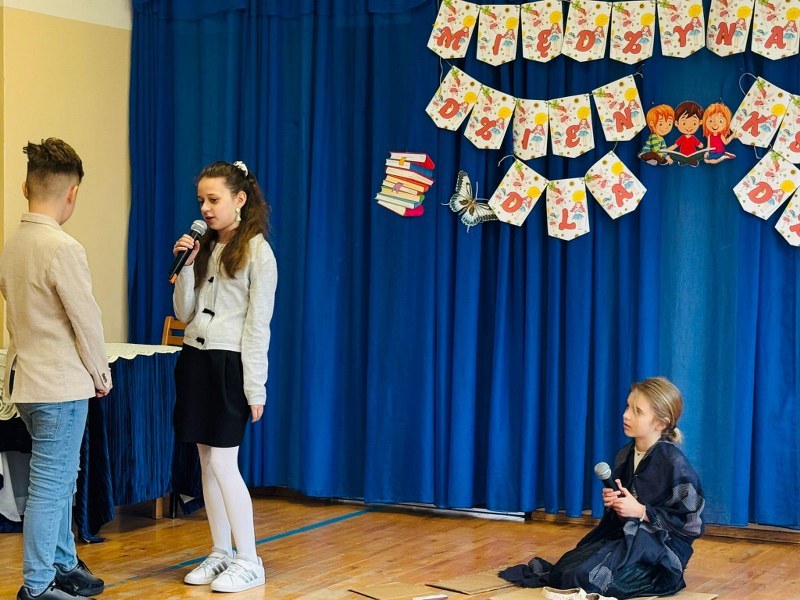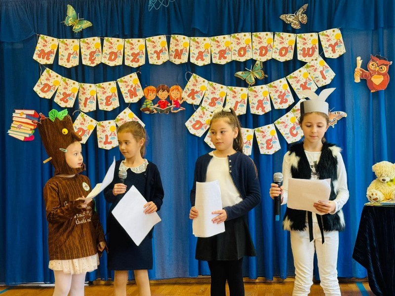 Z tej okazji 1 kwietnia br. w naszej szkole odbyło się niezwykłe spotkanie czytelnicze, przygotowane przez najmłodszych miłośników książek pod kierunkiem wychowawców i szkolnej bibliotekarki. Przedszkolaki wdzięcznie zaprezentowały się w piosenkach „Kaczka dziwaczka” i „Na wyspach Bergamutach”. Dzieci z klasy I przeczytały wybrane wiersze polskich poetów, uczniowie z klasy II przygotowali pouczające przedstawienie „O kogutku i kurce”, a trzecioklasiści umilili nam czas przedstawieniem na podstawie baśni „Dziewczynka z zapałkami”.