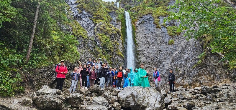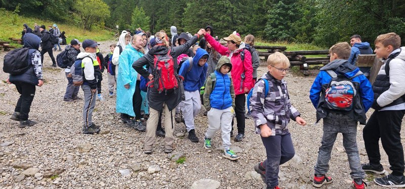W dniu 17 września 2025r uczniowie Szkoły Podstawowej w Jodłówce Tuchowskiej uczęszczający na zajęcia do świetlicy profilaktycznej wzięli udział w wycieczce krajoznawczo–turystycznej do Zakopanego i jego okolic. Głównym celem wyjazdu było poznanie piękna Tatr, aktywny wypoczynek oraz integracja uczniów. Pierwszym punktem programu było wyjście na Sarnią Skałę (1375 m n.p.m.). Trasa prowadziła przez Dolinę Białego i Wodospad Siklawica, który zrobił na uczniach duże wrażenie. Po dotarciu na szczyt podziwiali panoramę Tatr Zachodnich i Giewontu. Kolejną atrakcją była wizyta na Skywalku, tarasie widokowym w miejscowości Małe Ciche w gminie Poronin, z którego można podziwiać Zakopane i górskie krajobrazy z zupełnie innej perspektywy. Podczas całego wyjazdu dopisywała piękna pogoda z małym deszczem na czele i dobre humory wszystkich uczestników. Uczniowie mieli okazję lepiej poznać uroki Podhala, spędzić czas na świeżym powietrzu oraz wzmocnić swoje siły podczas wspólnych górskich wędrówek. Wycieczka zakończyła się powrotem do Jodówki Tuchowskiej pełnym wrażeń i nowych wspomnień. Dziękujemy Gminnej Komisji Rozwiązywania Problemów Alkoholowych za wsparcie finansowe, dzięki któremu wycieczka mogła się odbyć. Dziękujemy również nauczycielom oraz rodzicom, którzy czuwali nad bezpieczeństwem wszystkich uczestników. Słowa podziękowania kierujemy też do Pana przewodnika, który przeprowadził kilka lekcji bogatych w wiadomości o całym Podhalu.