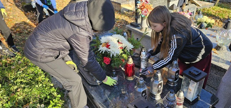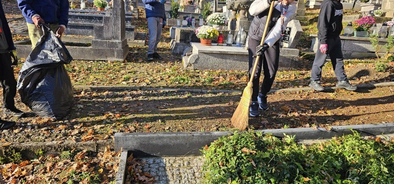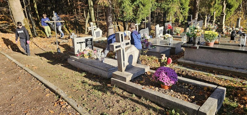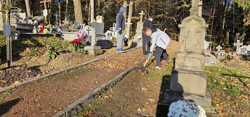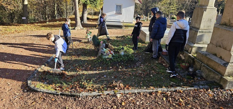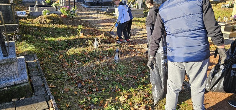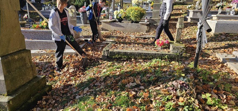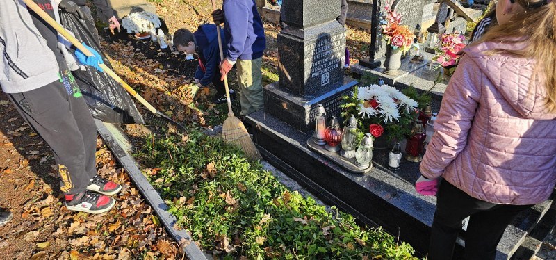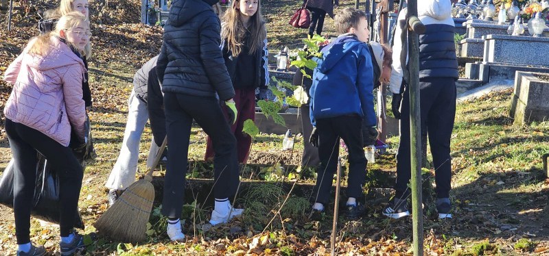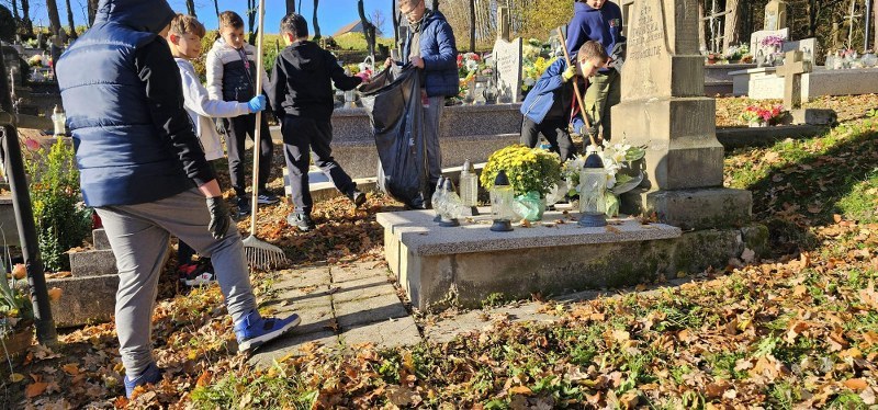 Uczniowie Szkoły Podstawowej im. Marii Kotulskiej w Jodłówce Tuchowskiej wzięli udział w akcji sprzątania cmentarza parafialnego. Dzieci porządkowały groby, usuwały liście i zapalały znicze na mogiłach, okazując w ten sposób szacunek dla zmarłych. Działanie to miało również charakter wychowawczy – uczyło pamięci, odpowiedzialności i wspólnej pracy.
