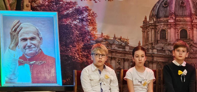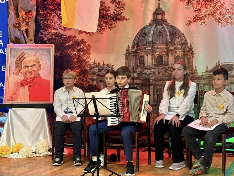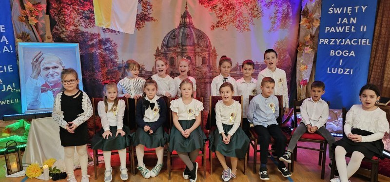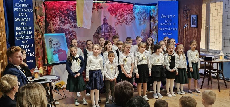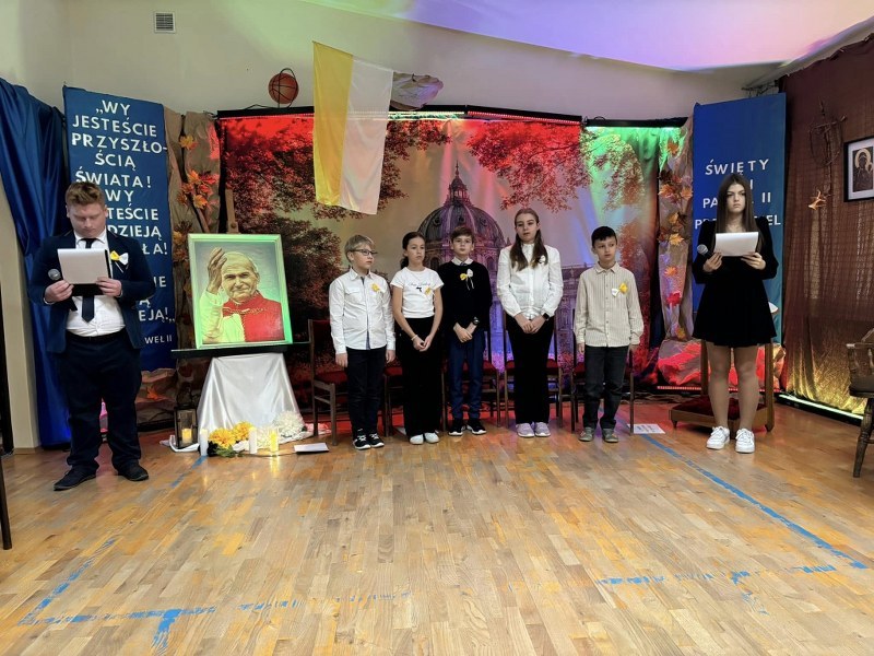 Podczas uroczystości uczniowie przypomnieli najważniejsze wydarzenia z życia Karola Wojtyły, a także jego nauczanie, które wciąż pozostaje aktualne. Nie zabrakło pięknych recytacji, wzruszających pieśni oraz wspólnej refleksji nad słowami naszego wielkiego Rodaka. 🇵🇱💛