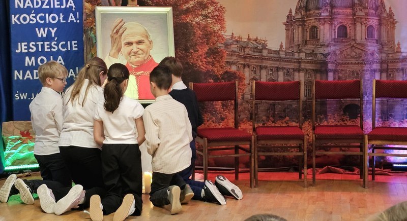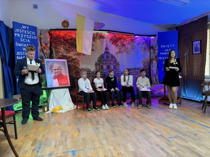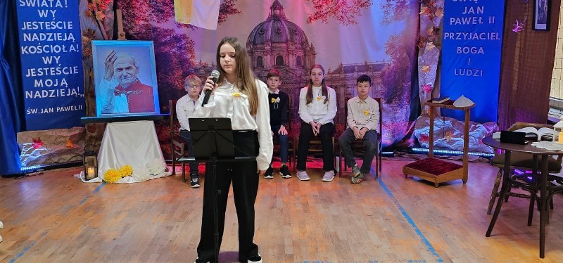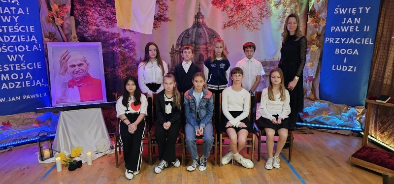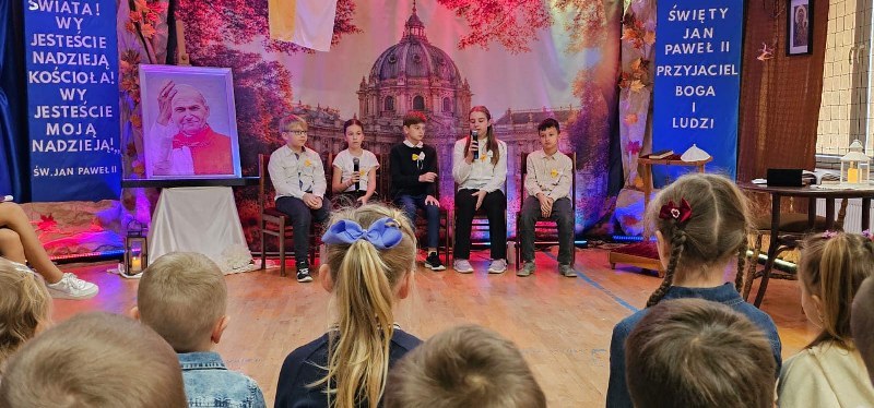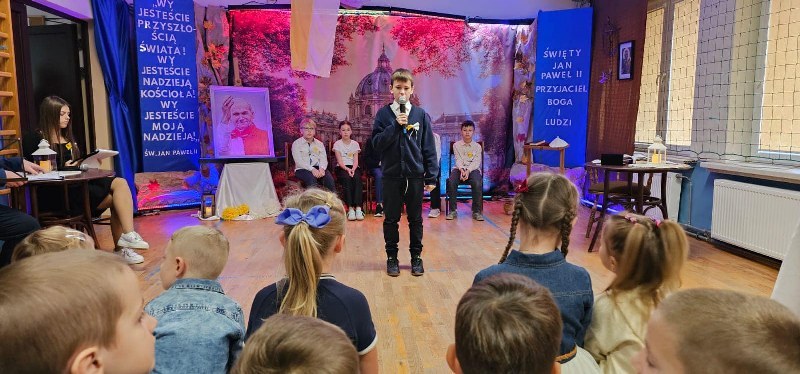 Dziś w naszej szkole odbyła się wyjątkowa akademia upamiętniająca postać św. Jana Pawła II – papieża, który przez całe życie uczył nas miłości, dobra i szacunku do drugiego człowieka.